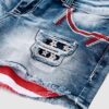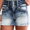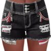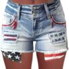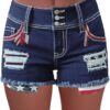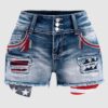 Women High Waist American Flag Button Fly Raw Hem Denim Shorts
